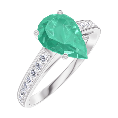 « L'ATELIER » NR 169407Pierścionek Białe złoto 750 - Szmaragd Gruszka 1 karat - Oprawa Diament