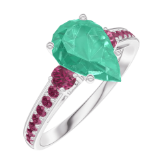 Pierścionek Białe złoto 750 - Szmaragd Gruszka 1 karat - Kamienie boczne Rubin - Oprawa Rubin