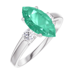 Pierścionek Białe złoto 375 - Szmaragd Markiza 1 karat - Kamienie boczne Diament