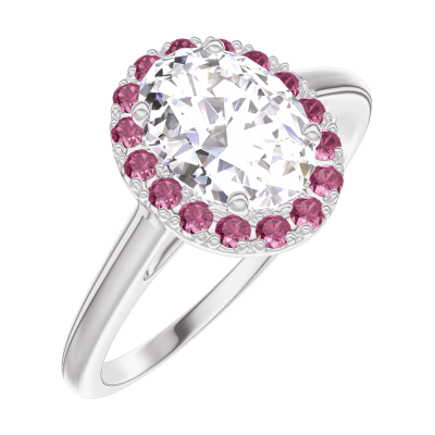 « L'ATELIER » Nº170164Pierścionek Białe złoto 375 - Diament Owal 0.5 karat - Korona z kamieni Rubin 4.8