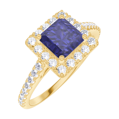 « L'ATELIER » NR 170630Pierścionek Żółte złoto 375 - Niebieski szafir „Księżniczka” 0.5 karat - Korona z kamieni Diament - Oprawa Diament 4.6