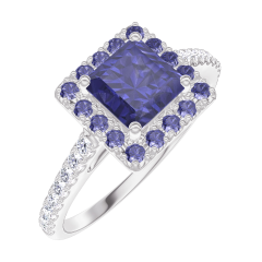 Pierścionek Białe złoto 750 - Niebieski szafir „Księżniczka” 0.5 karat - Korona z kamieni Niebieski szafir - Oprawa Diament