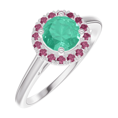 « L'ATELIER » NR 170883Pierścionek Białe złoto 750 - Szmaragd okrągły 0.5 karat - Korona z kamieni Rubin 5