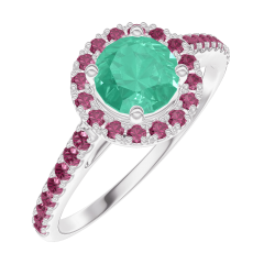 Pierścionek Białe złoto 750 - Szmaragd okrągły 0.5 karat - Korona z kamieni Rubin - Oprawa Rubin