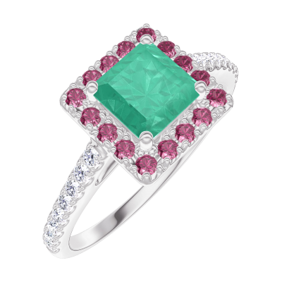« L'ATELIER » NR 170935Pierścionek Białe złoto 750 - Szmaragd „Księżniczka” 0.5 karat - Korona z kamieni Rubin - Oprawa Diament 4.6 (10)