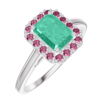 « L'ATELIER » Nº170979Pierścionek Białe złoto 750 - Szmaragd Prostokąt 0.5 karat - Korona z kamieni Rubin 4.9