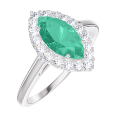 « L'ATELIER » NR 171108Pierścionek Białe złoto 375 - Szmaragd Markiza 0.5 karat - Korona z kamieni Diament
