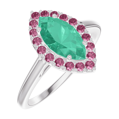 « L'ATELIER » NR 171123Pierścionek Białe złoto 750 - Szmaragd Markiza 0.5 karat - Korona z kamieni Rubin