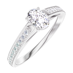 Pierścionek Białe złoto 750 - Diament laboratoryjny Owal 0.3 karat - Oprawa Diament laboratoryjny