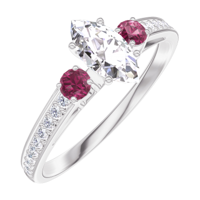 « L'ATELIER » NR 180548Pierścionek Białe złoto 375 - Diament laboratoryjny Markiza 0.3 karat - Kamienie boczne Rubin - Oprawa Diament laboratoryjny