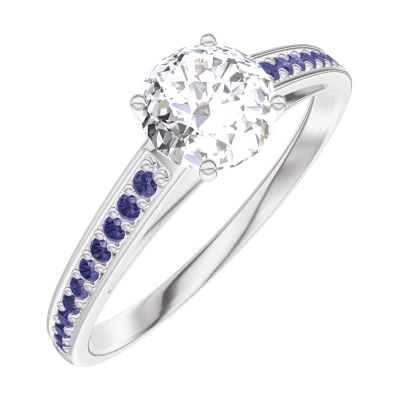 « L'ATELIER » Nº182416Pierścionek Białe złoto 375 - Diament laboratoryjny okrągły 0.5 karat - Oprawa Niebieski szafir 4.9