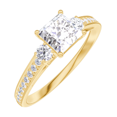Pierścionek Żółte złoto 750 - Diament laboratoryjny „Księżniczka” 0.5 karat - Kamienie boczne Diament laboratoryjny - Oprawa Diament laboratoryjny