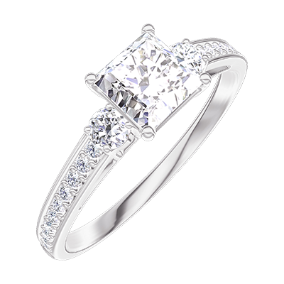 « L'ATELIER » NR 182527Pierścionek Białe złoto 750 - Diament laboratoryjny „Księżniczka” 0.5 karat - Kamienie boczne Diament laboratoryjny - Oprawa Diament laboratoryjny