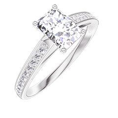 Pierścionek Białe złoto 375 - Diament laboratoryjny Prostokąt 0.5 karat - Oprawa Diament laboratoryjny