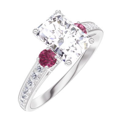 « L'ATELIER » Nº185047Pierścionek Białe złoto 750 - Diament laboratoryjny Prostokąt 0.7 karat - Kamienie boczne Rubin - Oprawa Diament laboratoryjny