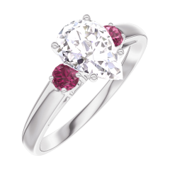 Pierścionek Białe złoto 750 - Diament laboratoryjny Gruszka 0.7 karat - Kamienie boczne Rubin