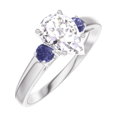 Pierścionek Białe złoto 375 - Diament laboratoryjny Gruszka 0.7 karat - Kamienie boczne Niebieski szafir