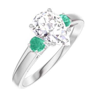 « L'ATELIER » Nº185283Pierścionek Białe złoto 750 - Diament laboratoryjny Gruszka 0.7 karat - Kamienie boczne Szmaragd