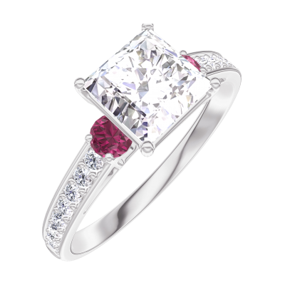 « L'ATELIER » NR 187348Pierścionek Białe złoto 375 - Diament laboratoryjny „Księżniczka” 1 karat - Kamienie boczne Rubin - Oprawa Diament laboratoryjny