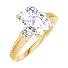 Pierścionek Żółte złoto 375 - Diament laboratoryjny Prostokąt 1 karat - Kamienie boczne Diament laboratoryjny