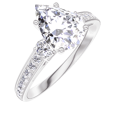 « L'ATELIER » NR 187628Pierścionek Białe złoto 375 - Diament laboratoryjny Gruszka 1 karat - Kamienie boczne Diament laboratoryjny - Oprawa Diament laboratoryjny