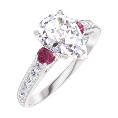 « L'ATELIER » Nº187647Pierścionek Białe złoto 750 - Diament laboratoryjny Gruszka 1 karat - Kamienie boczne Rubin - Oprawa Diament laboratoryjny