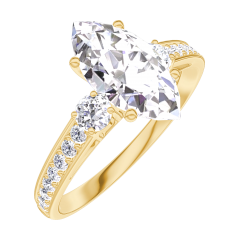 Pierścionek Żółte złoto 375 - Diament laboratoryjny Markiza 1 karat - Kamienie boczne Diament laboratoryjny - Oprawa Diament laboratoryjny