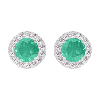« L'ATELIER » NR 201352Kolczyki Białe złoto 375 - Szmaragd okrągły 0.3 karat (2 X) - Korona z kamieni Diament 5 (3)