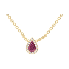 Naszyjnik Żółte złoto 375 - Rubin Gruszka 0.3 karat - Korona z kamieni Diament - Łańcuszek Łańcuszek ankier