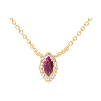 « L'ATELIER » Nº201994Naszyjnik Żółte złoto 375 - Rubin Markiza 0.3 karat - Korona z kamieni Diament - Łańcuszek Łańcuszek ankier