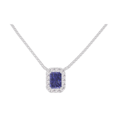 « L'ATELIER » NR 202096Naszyjnik Białe złoto 375 - Niebieski szafir Prostokąt 0.3 karat - Korona z kamieni Diament - Łańcuszek Wenecjana