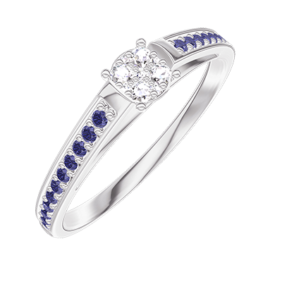 « L'ATELIER » Nº209016Pierścionek Białe złoto 375 - Klaster naturalnych diamentów okrągły odpowiednik 0.3 - Oprawa Niebieski szafir 4.8