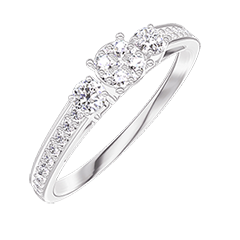 « L'ATELIER » NR 209028Pierścionek Białe złoto 375 - Klaster naturalnych diamentów okrągły odpowiednik 0.3 - Kamienie boczne Diament - Oprawa Diament 4.8