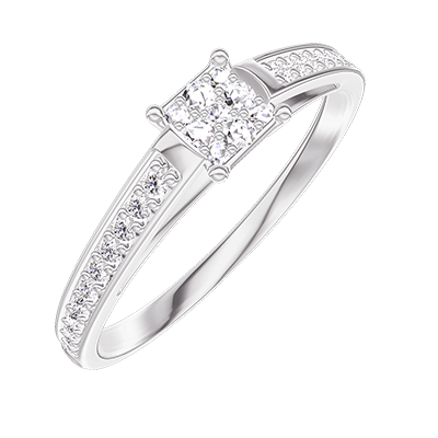 « L'ATELIER » NR 209108Pierścionek Białe złoto 375 - Klaster naturalnych diamentów „Księżniczka” odpowiednik 0.3 - Oprawa Diament