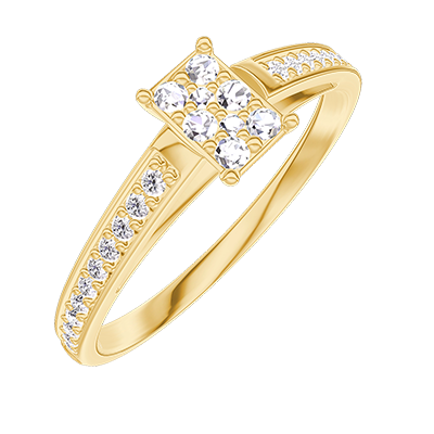 « L'ATELIER » Nº209205Pierścionek Żółte złoto 750 - Klaster naturalnych diamentów Prostokąt odpowiednik 0.3 - Oprawa Diament