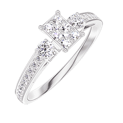Pierścionek Białe złoto 750 - Klaster naturalnych diamentów Prostokąt odpowiednik 0.3 - Kamienie boczne Diament - Oprawa Diament