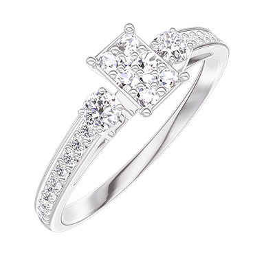 « L'ATELIER » NR 209227Pierścionek Białe złoto 750 - Klaster naturalnych diamentów Prostokąt odpowiednik 0.3 - Kamienie boczne Diament - Oprawa Diament
