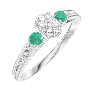 « L'ATELIER » NR 209387Pierścionek Białe złoto 750 - Klaster naturalnych diamentów Owal odpowiednik 0.3 - Kamienie boczne Szmaragd - Oprawa Diament 5
