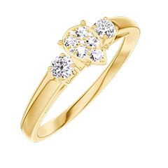 « L'ATELIER » NR 209422Pierścionek Żółte złoto 375 - Klaster naturalnych diamentów Gruszka odpowiednik 0.3 - Kamienie boczne Diament