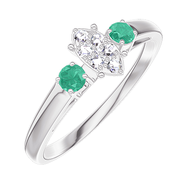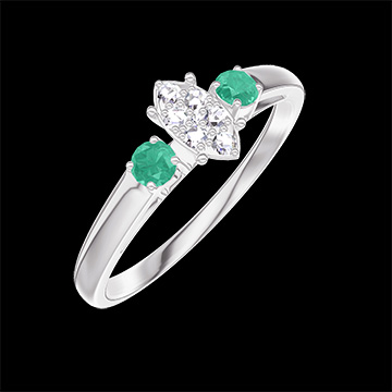 « L'ATELIER » Nº209583Pierścionek Białe złoto 750 - Klaster naturalnych diamentów Markiza odpowiednik 0.3 - Kamienie boczne Szmaragd