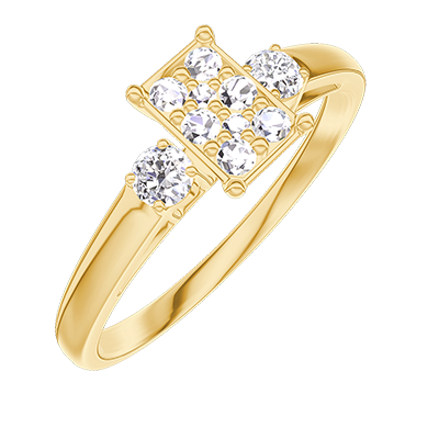 « L'ATELIER » NR 209822Pierścionek Żółte złoto 375 - Klaster naturalnych diamentów Prostokąt odpowiednik 0.5 - Kamienie boczne Diament