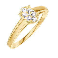 Pierścionek Żółte złoto 375 - Klaster naturalnych diamentów Owal odpowiednik 0.5
