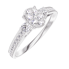 Pierścionek Białe złoto 750 - Klaster naturalnych diamentów Owal odpowiednik 0.5 - Kamienie boczne Diament - Oprawa Diament