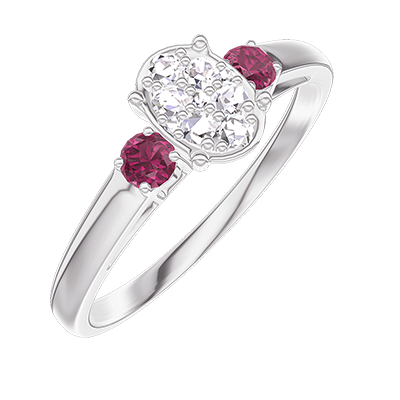 « L'ATELIER » Nº209944Pierścionek Białe złoto 375 - Klaster naturalnych diamentów Owal odpowiednik 0.5 - Kamienie boczne Rubin
