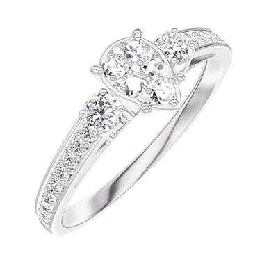« L'ATELIER » NR 210027Pierścionek Białe złoto 750 - Klaster naturalnych diamentów Gruszka odpowiednik 0.5 - Kamienie boczne Diament - Oprawa Diament