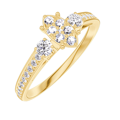 « L'ATELIER » NR 210126Pierścionek Żółte złoto 375 - Klaster naturalnych diamentów Markiza odpowiednik 0.5 - Kamienie boczne Diament - Oprawa Diament