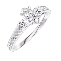 « L'ATELIER » NR 210127Pierścionek Białe złoto 750 - Klaster naturalnych diamentów Markiza odpowiednik 0.5 - Kamienie boczne Diament - Oprawa Diament