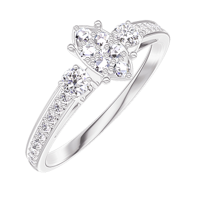 « L'ATELIER » NR 210127Pierścionek Białe złoto 750 - Klaster naturalnych diamentów Markiza odpowiednik 0.5 - Kamienie boczne Diament - Oprawa Diament