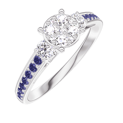 « L'ATELIER » NR 210236Pierścionek Białe złoto 375 - Klaster naturalnych diamentów okrągły odpowiednik 0.7 - Kamienie boczne Diament - Oprawa Niebieski szafir 5