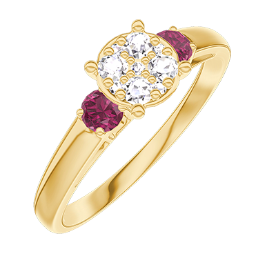 « L'ATELIER » Nº210241Pierścionek Żółte złoto 750 - Klaster naturalnych diamentów okrągły odpowiednik 0.7 - Kamienie boczne Rubin 5